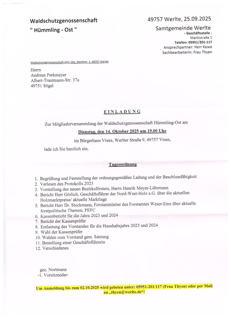 Aktuelles WSG H.-Ost · 07. Oktober 2025 Einladung zur Mitgliederversammlung am 14.10.2025 WSG Hümmling-Ost lädt in das Bürgerhaus Vrees ein tagPlaceholderTags: